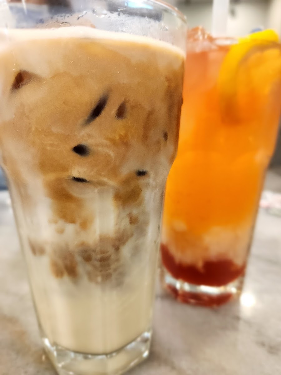 The menu highlights a range of comfort foods alongside some lighter bites and junior meals, which makes it accessible for groups with diverse tastes, including families with children. The selection of drinks, from traditional milk tea to lychee juice and ice soy milk, complements the food well and suits the tropical climate.